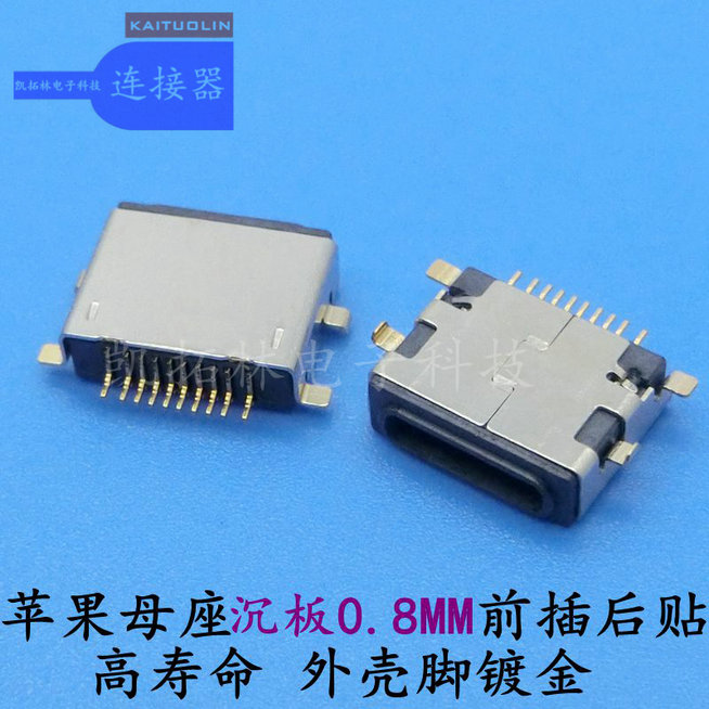 苹果母座连接器沉板0.8MM 前插后贴镀...