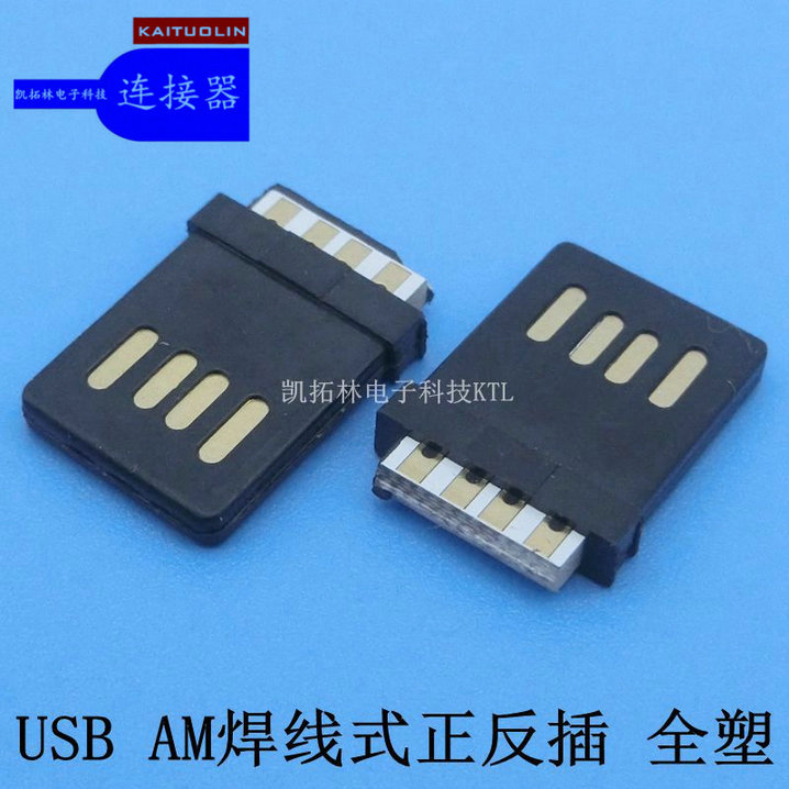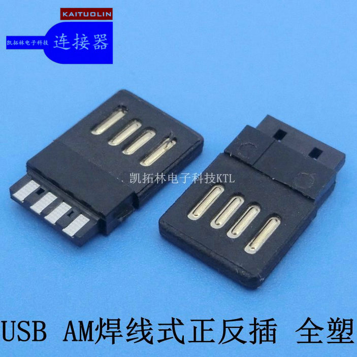 苹果专用USB母座AM 全塑胶 焊线式双...