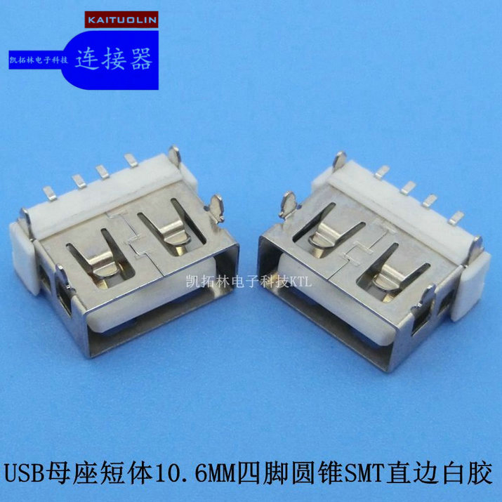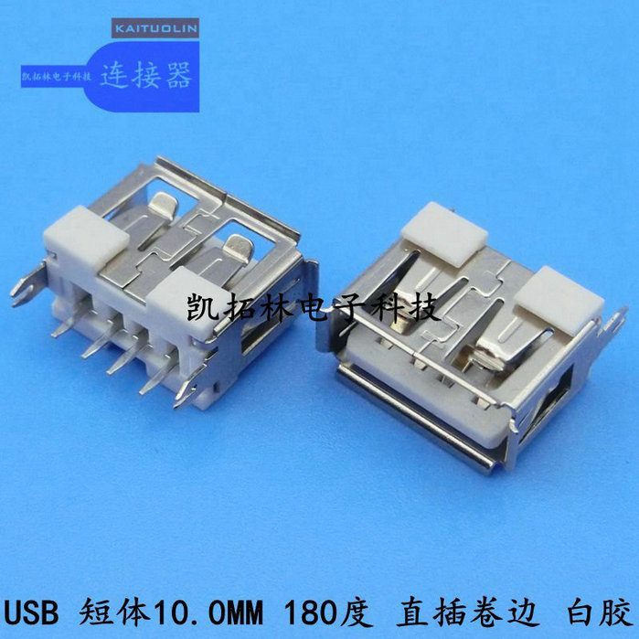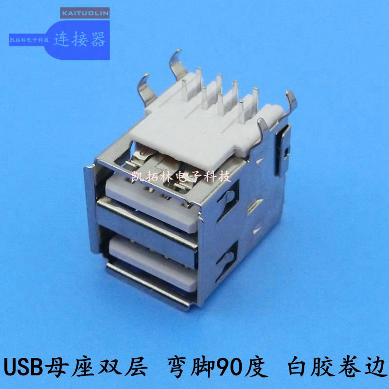 东莞特供USB母座双层弯脚白胶卷边不耐温