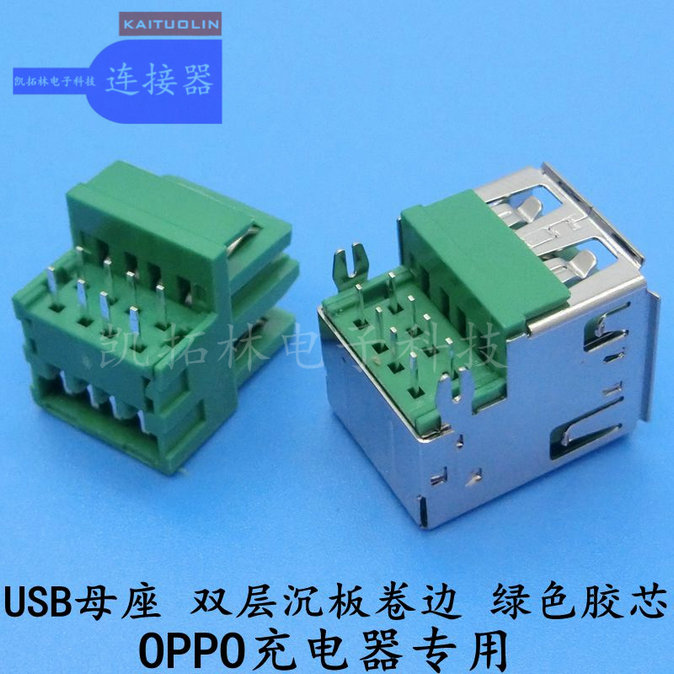 OPPO充电专用双层沉板绿色胶芯USB母...