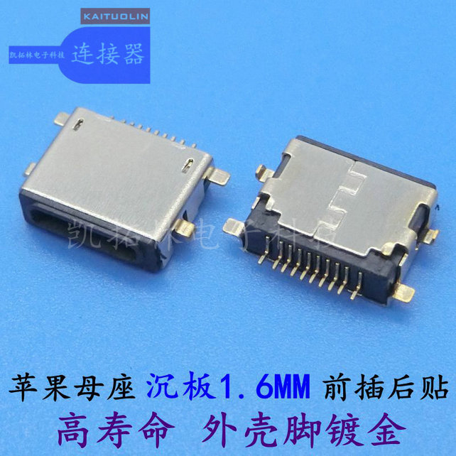 前插后贴沉板1.6MM镀金苹果母座专用插...