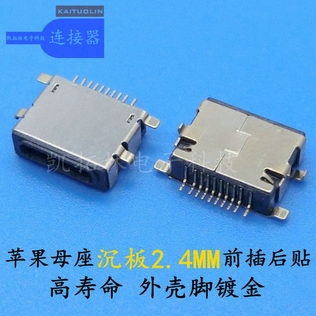 苹果母座沉板2.4MM前插后贴高寿命外壳...