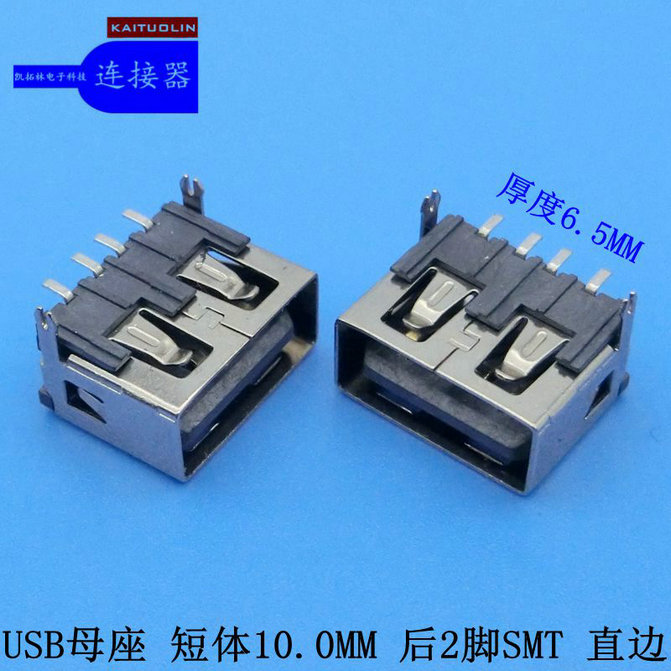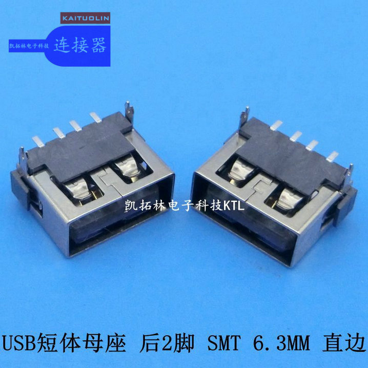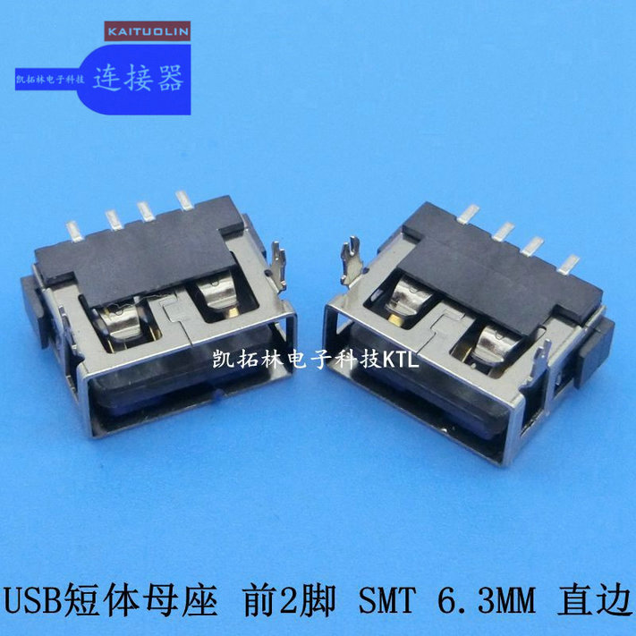 USB母座后2脚直边180°6.3SMT
