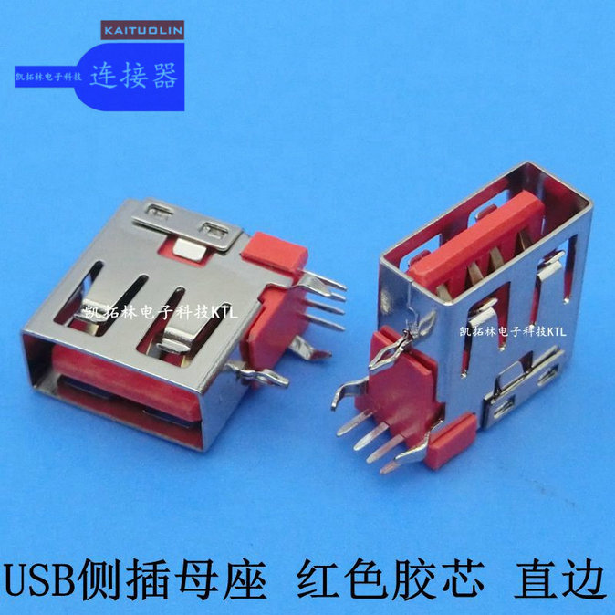 USB 侧插母座红色胶芯直边O型脚弯脚
