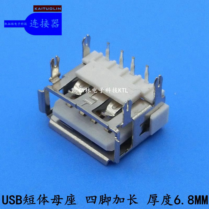 USB 母座短体四脚加长厚度6.8反向