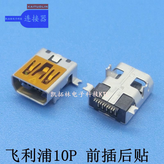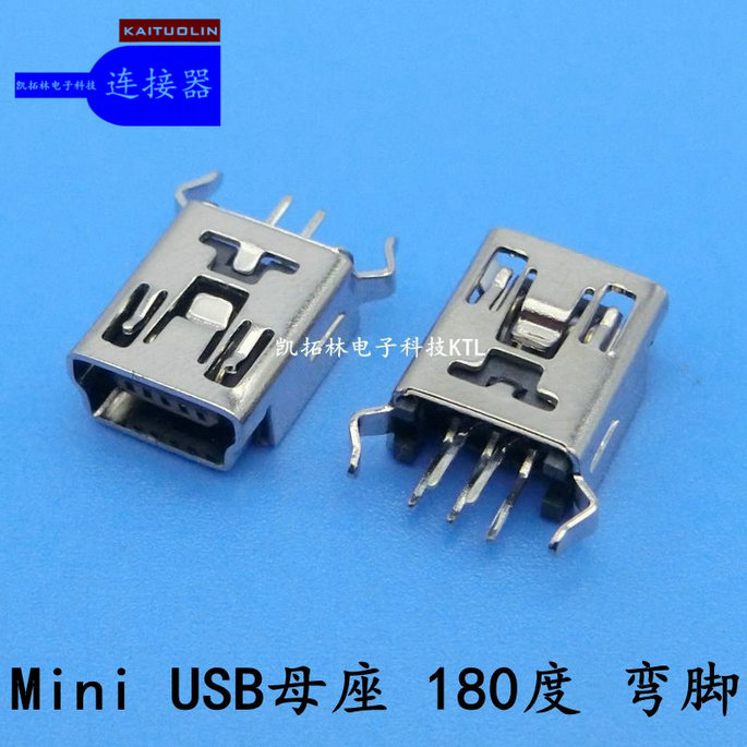 MINIUSB母座180°弯脚贴麦拉镀金...