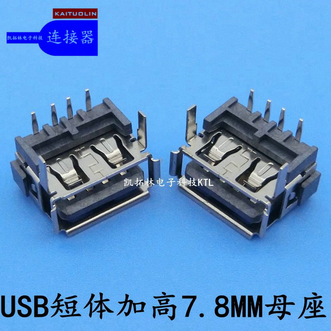 深圳连接器USB母座独体加高7.8后插白...