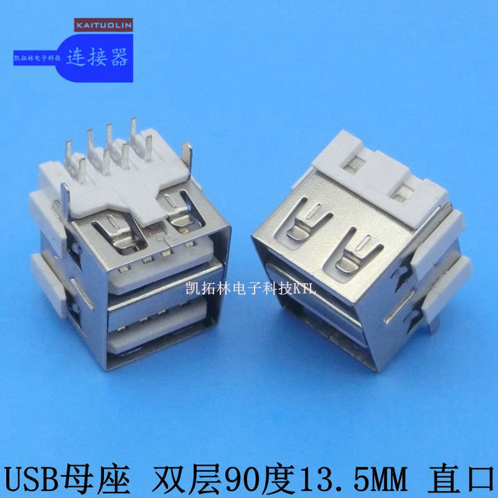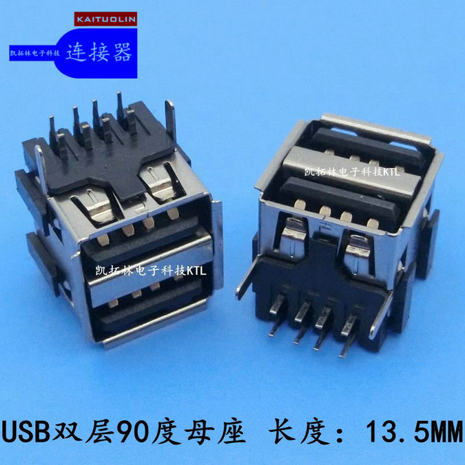 USB母座双层90°母座长度13.5黑胶...