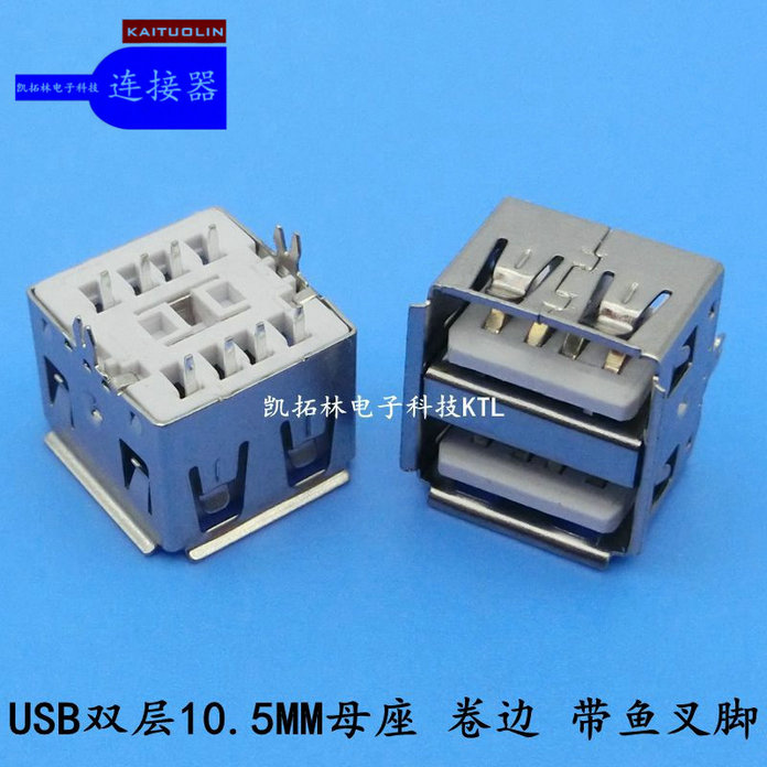 USB母座双层卷边带鱼叉脚10.5