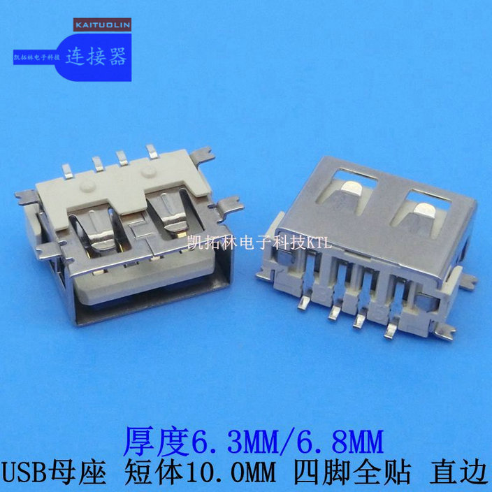 特卖USB母座厚度6.8直边四脚全贴米黄...