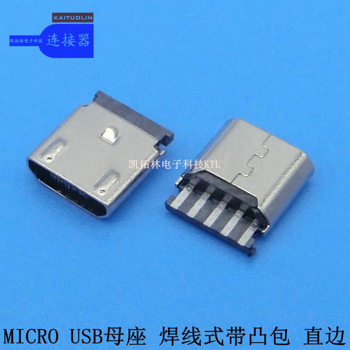 MICRO母座焊线式+带凸包+直口 2脚