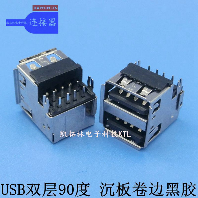 连接器插座USB 母座双层沉板卷边黑胶9...